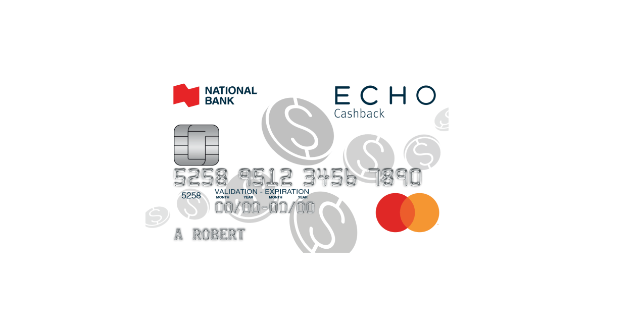 Welcome to financial freedom with the National Bank ECHO Cashback Mastercard, designed to fit the Canadian lifestyle effortlessly.